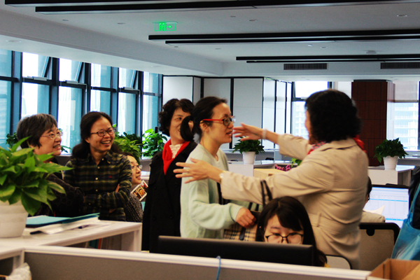 在辦公室主任陳瑾等領(lǐng)導(dǎo)的陪同下,老員工們參觀了公司六個樓層的辦公區(qū)域。每到一處、每看到一個老熟人,老同志們都充滿欣喜和感動,感慨公司蓬勃發(fā)展、日新月異的變化、勾起美好回憶的同時,也對杭州熱聯(lián)時至今日的發(fā)展成績表示由衷的高興和自豪。