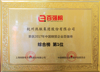 Ranked first in the Top 100 Chinese Steel Trading Enterprises?in?2017