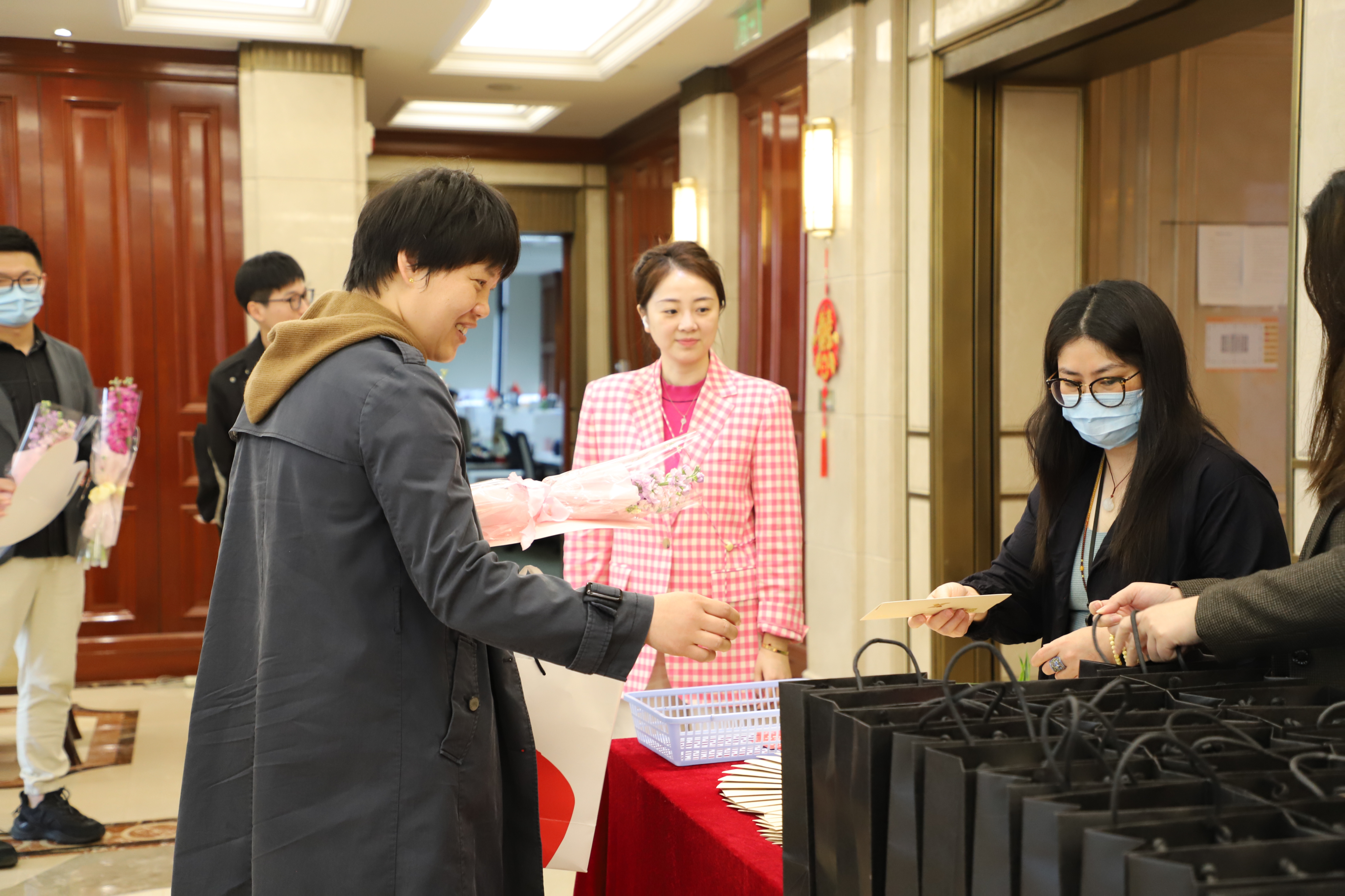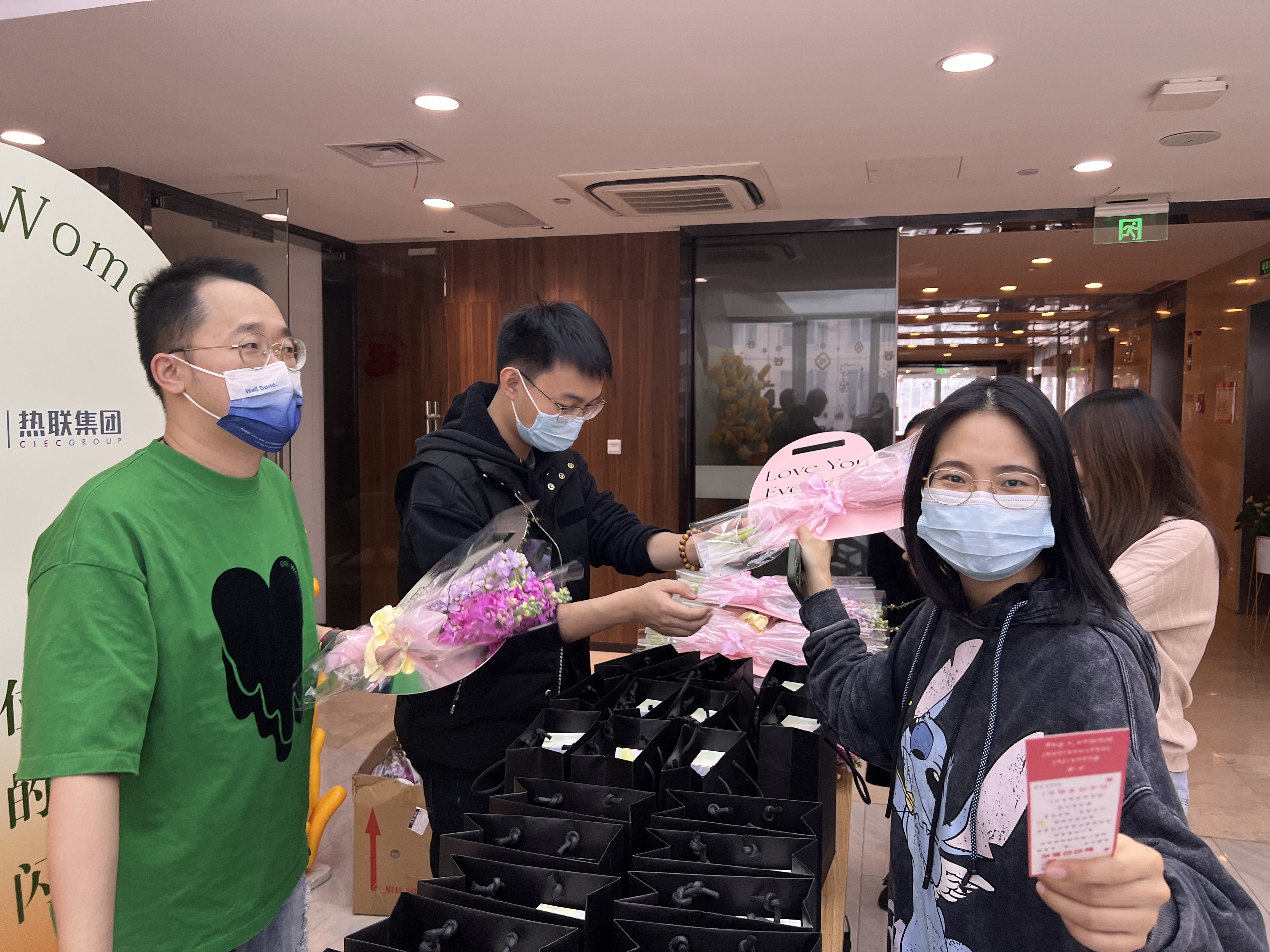 公司帥氣的男同胞為女同事們送去了節(jié)日花束、節(jié)日祝福,還有專屬定制的“遇見美好”小禮品?!澳銈冋娴奶行牧?,突然感覺今天的上班都變得有儀式感了?!币晃粺崧?lián)女員工表示。